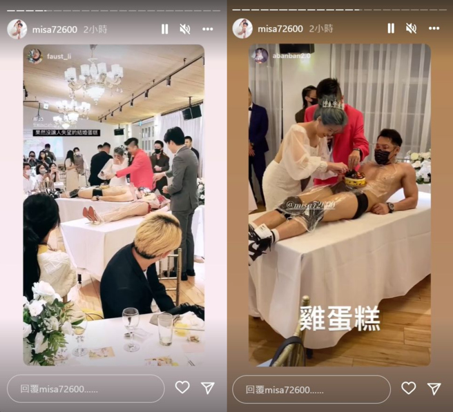 米砂的婚禮現場找來辣妹猛男玩人體壽司。(圖/IG@misa72600)