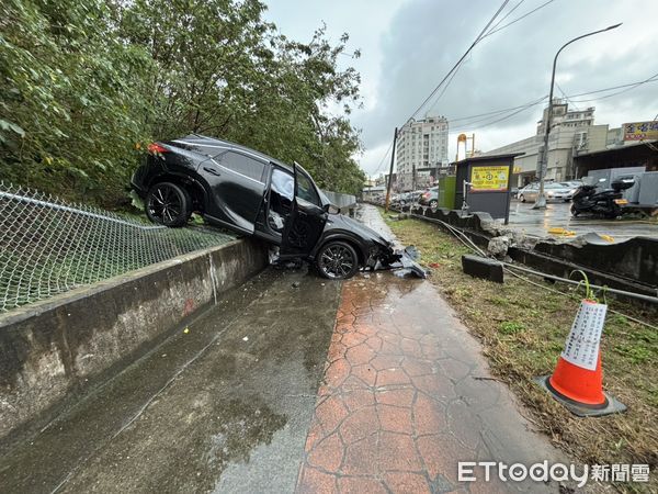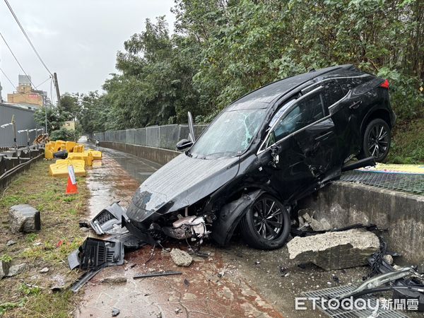 由於車速不慢,先自撞銀河路停車格旁水泥護欄後,一陣翻滾後壓毀國道1號南下邊坡的鐵絲網圍籬,車頭倒轉180度,高男一度受困車內,在救護人員協助下自副駕駛座脫困。