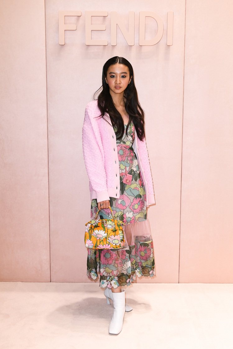 木村光希去看FENDI 2020秋冬大秀時正是穿了樸敏英同款粉色外套。圖/FENDI提供