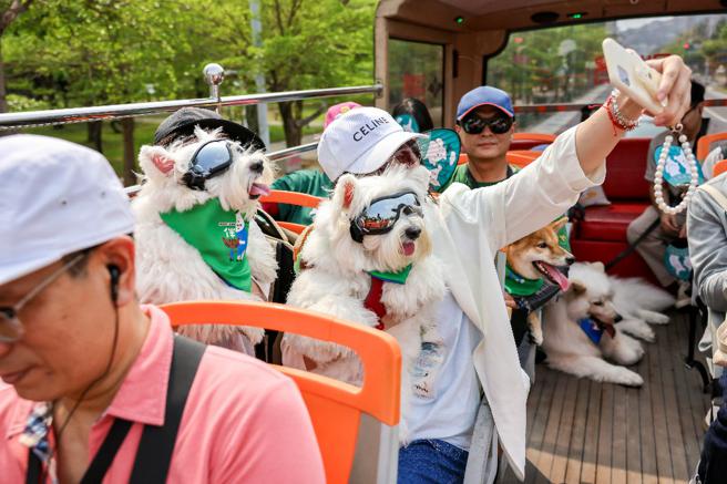 參加活動的飼主及寵物們由駁二搭乘開頂雙層巴士出發(圖片來源:高雄市農業局提供)