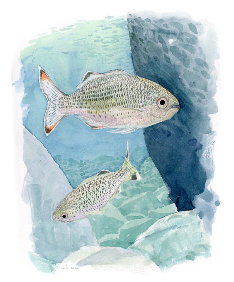 年幼的禿頭鯊、嬌小豔麗的枝牙𫚥虎,只會生活在礫石鋪積的淺灘;拇指粗的吻𫚥虎、塘鱧,會蟄伏在跌水潭頭或大型塊石邊;忙碌的紅尾冬、烏尾冬,來回在流心沿線上穿梭,但牠們至多巴掌大,還只算是孩子──隨着牠們茁壯成熟,將移居至一塊巨石之下、溪流轉彎之外緣,或一片陡峭巖壁旁,幽綠的水體中,因爲那即是深潭之所在。