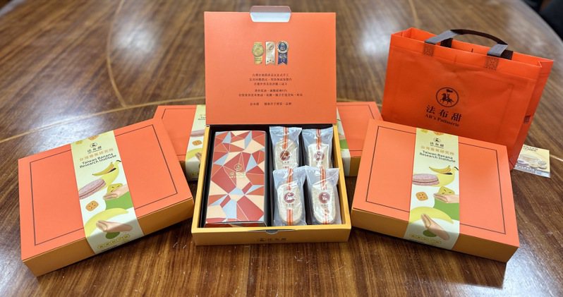 致力推廣香蕉產銷、全株應用的臺灣香蕉研究所研發青香蕉粉,這次與知名品牌法布甜聯名,推出馬卡龍鳳梨酥與法式綠蕉薄餅卷,搶攻伴手禮市場。記者劉星君/攝影