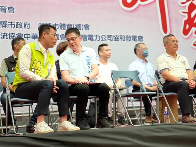 ▲本次舞藝活動恰好近期基隆熱議的立委參選人市議員張秉鈞(左一)和民衆黨前秘書長謝立功(左二)同臺。兩人均表示會大力支持體育運動與爭取補助。(徐佑升攝)