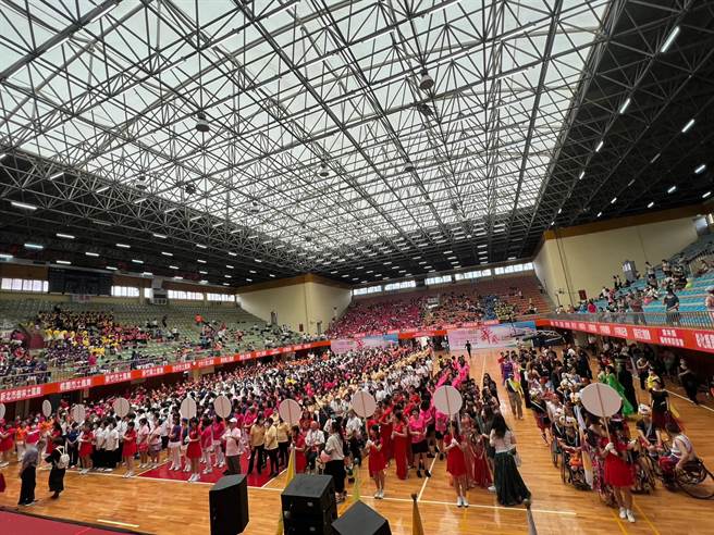 ▲本次「2023年全國舞藝展演」有來自全國的舞藝團體共6700人,場面相當壯觀。主辦單位中華民國縣市體育會聯合總會會長鄭錦洲表示,很多參加者前一天就來住基隆,飯店都全住滿,對經濟觀光有很大的助益(徐佑升攝)