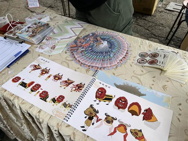 白鹿動畫針對西港刈香的特色藝陣「白鶴陣」、「金獅陣」、「牛犁歌陣」設計3D動畫角色人物。(張毓翎攝)