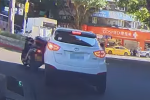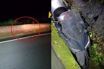 一名男子在臉書社團「重機車友 ❘ 各區路況天氣、資訊分享中心」發文,並上傳1段54秒影片,從影片中可見,有位重機騎士行駛在山路彎道上,然而他疑似要看後方車友是否跟上,於是頻頻回頭望,沒想到一回神,車子已經在道路排水溝旁,下秒便連人帶車跌入排水溝,而重機也直挺挺的卡在排水溝內,所幸騎士及時跳開,沒有與機車卡在山溝內;對此,原PO也在貼文寫下「不要一直顧後面忘了前面啊...一桿進洞」。