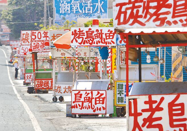 過去恆春有賣烤伯勞(鳥仔巴)的「特色小吃」,現在少了很多,卻仍有人違法獵捕。圖爲2006年墾丁國家公園外的楓港街區,烤鳥攤綿延數百公尺。(本報資料照片)