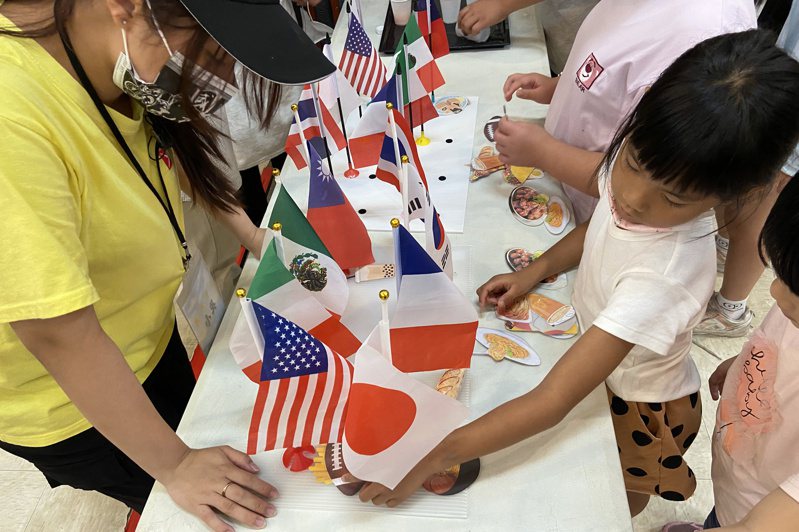 弘光科大餐旅系學生帶小朋友玩國家美食對對碰。記者遊振升/攝影