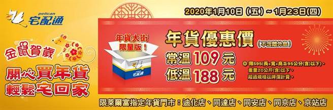 服務內容包含「迪化街商圈」的萊爾富迪化店、同達店、同京店,以及「後車站商圈」的萊爾富同安店、京站店等5間門市,現場提供S95規格常溫優惠價109元、低溫優惠價188元,附贈年貨紙箱一隻,讓民衆開心買年貨,輕鬆宅回家。
