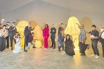2024年臺北地景公共藝術計劃開幕記者會,邀請「人米犬頁製作」表演團隊揭開活動序幕。(溫予菱攝)
