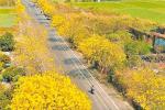 ▲臺中太順路夾道黃金風鈴木。(圖/強生與小吠的Hyper人蔘提供,以下同,請勿隨意翻攝。)