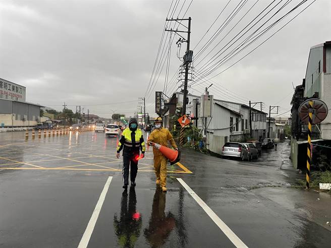 17時15分許獲報豐勢路二段210號前淹水,使車輛於路中拋錨造成回堵,警員廖辛根立即到場協助交通疏導,並通報拖吊車前來將故障車輛排除,直至交通恢復順暢後離去。警方於危難發生時由翁子所所長裘景智帶領下立即趕往現場實施交通疏導並引導救災車輛至現場,使各項災害能順利排除,避免更大危難發生。