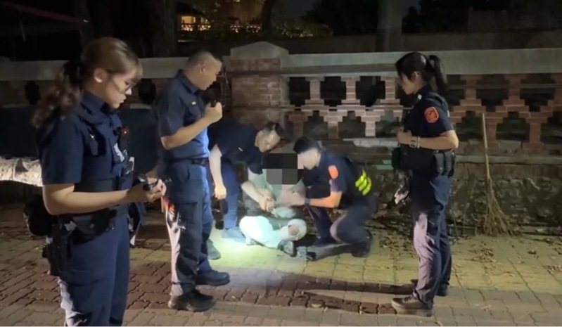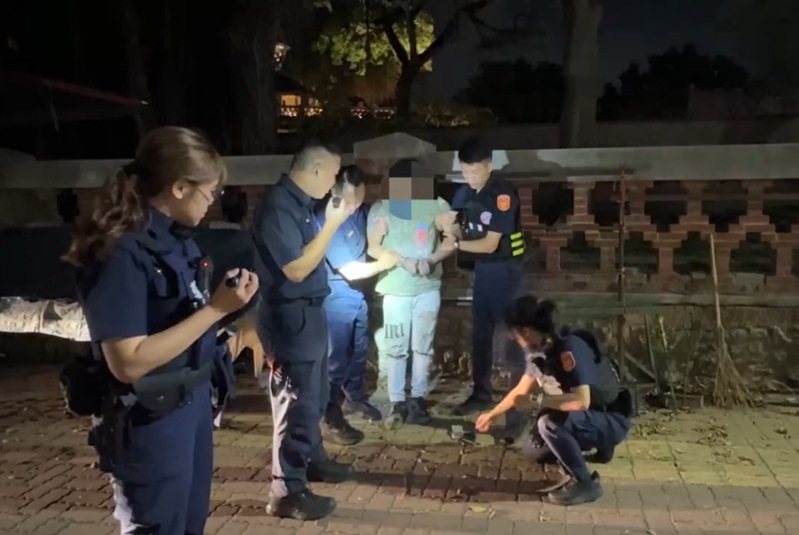 所長吳尚謙帶隊追捕,調閱監視器、不斷詢問天后宮,安平小砲臺以及安平碼頭附近老街商家、民衆,晚間7時許確認林姓男子逃跑躲藏於古堡街跟國勝路53巷口。記者袁志豪/翻攝