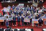 吳思瑤則指出,總預算審查有3大盲點,委員會審查議案被完全推翻,藍白被罵翻就瘋狂撤案,都沒有實質討論;表決前纔看得到黑箱最終版本,法案到預算案都是如此。藍白依舊站在民意對立面,雖然民意發酵,但可能還無法讓藍白起義來歸,剩下2天、20日開始表決,公民團體團結捍衛預算,只有民意纔會讓藍白害怕。
