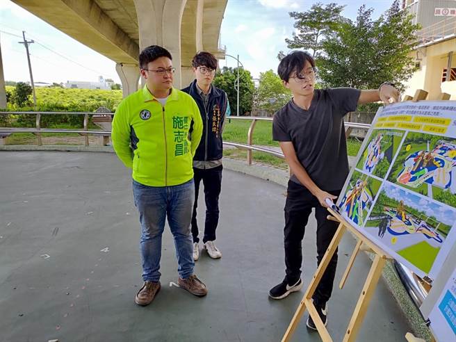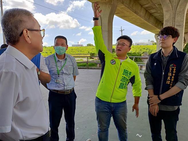市議員施志昌將爭取修復二高橋下漏水問題,還給親子更好的遊樂環境。(陳淑娥攝)