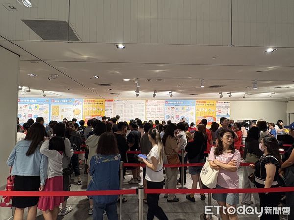 ▲新光三越中港店贈品處排滿準備兌換滿額禮的消費者。(圖/記者遊瓊華攝)
