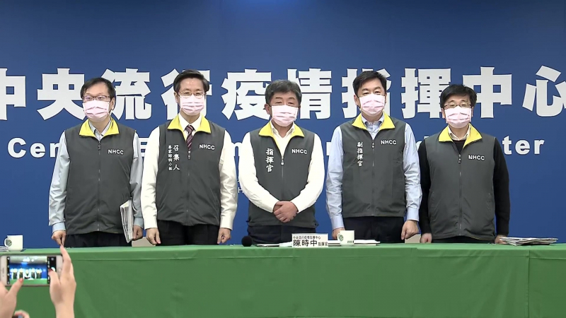 ▲中央流行疫情指揮中心昨(13)日例行記者會上,全員特別清一色戴着「粉紅色口罩」出席。(圖/ETtoday攝影中心攝)