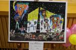 陳曦(左2)小小年紀與父母遍遊世界各國,在中市中區公所推出個展,業餘畫家區長黃至民(右)表示,作品用色繽紛,充滿創意。(陳淑芬攝)