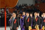 新北市教育局與中華民國三一寰宇文化協會15日在板橋體育館舉辦「大成至聖先師孔子2574週年誕辰釋奠禮暨2024年教師節敬師禮」,典禮結合古禮和現代美學。(王揚傑攝)