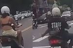 另外,也有網友發現長腿辣妹過馬路到對向騎樓後,前面的騎士阿伯不斷用眼神鎖定。(翻攝自YouTube頻道「WoWtchout - 地圖型行車影像分享平臺」)