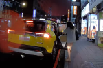 騎士行經三峽老街附近市場,見到一名長腿辣妹便減速禮讓,網友卻開玩笑表示「大嬸的話,你一定不會讓」。(翻攝自YouTube頻道「WoWtchout - 地圖型行車影像分享平臺」)