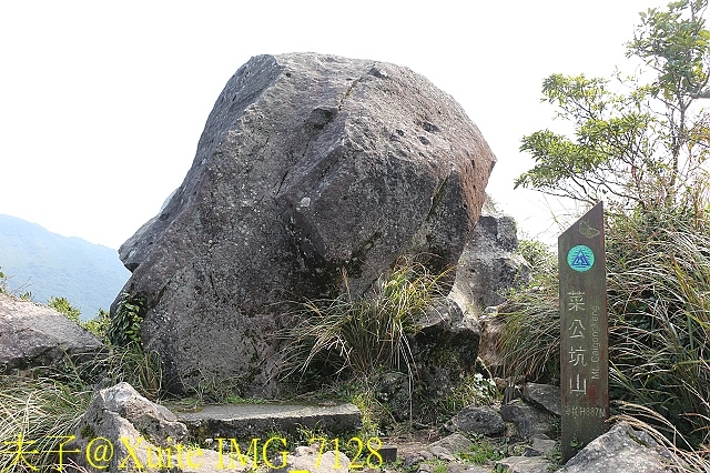 陽明山國家公園 - 菜公坑登山步道,菜公坑山爲大屯火山的寄生火山,外形渾圓呈鍾狀火山形態,地質上主要以安山岩質的火山體組成,頂峰上有一大塊「反經石」,形狀有點像人的側臉,表面可以讓磁鐵吸附,讓指南針錯亂無法作用最爲特別 (有實際測試照片爲證)。