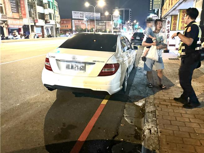 40歲李姓男子因妻子深夜羊水破裂,載着妻兒開車趕赴醫院途中遇到警方巡邏車,下車向警察求助。(太平警分局提供/馮惠宜臺中傳真)