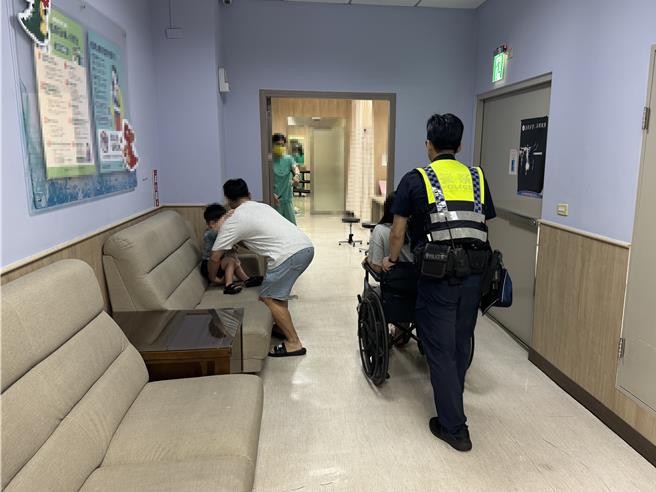 員警用警車開道,護送李男一定抵達醫院,員警還貼心推着輪椅護送孕婦進入產房。(太平警分局提供/馮惠宜臺中傳真)