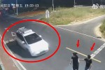浙江省金華市一對爺孫日前橫越馬路的途中,被一輛黑色轎車完全沒有減速撞飛,導致全身多處骨折。肇事駕駛後來解釋,當下太陽光太刺眼,影響了視線,沒發現前方有人,纔會閃避不及撞上。