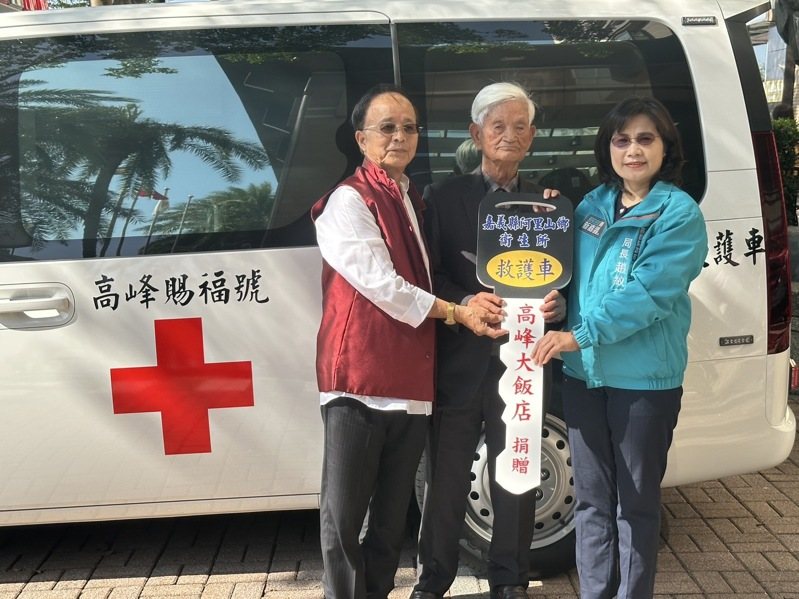 捐贈儀式,衛生局長趙紋華代表受贈並致贈感狀,祝賀陳清祥百歲生日快樂,趙紋華說,這輛救護車有助阿里山緊急醫療救護,強化重症患者處置時效,目前阿里山森林遊樂區香林衛生室,提供24小時全年無休醫療服務。