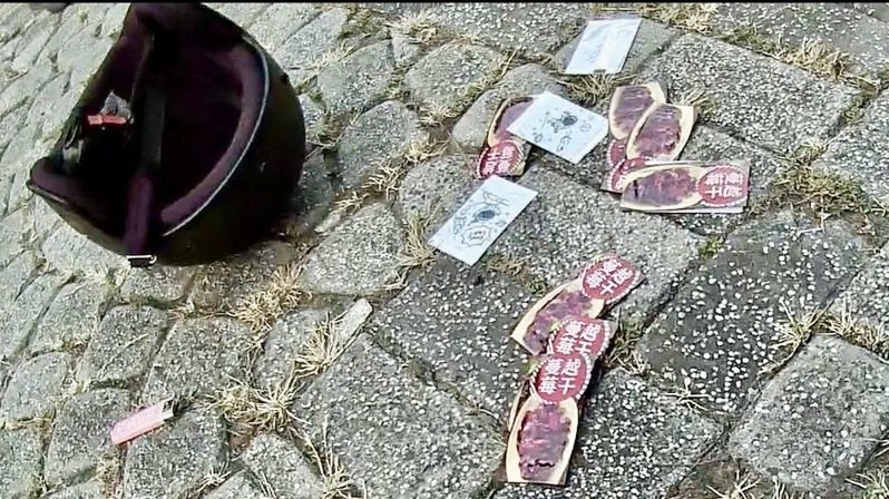 陳姓乘客佯裝不適,準備蹲下去休息時,竟有一把菜刀自其外套掉落下來,警方見狀立即依警察職權行使法相關規定,喝令兩男接受檢查。圖/讀者提供