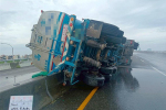 - 桃園大雨路滑視線差 臺61線西濱路段聯結車翻覆!車流塞3公里