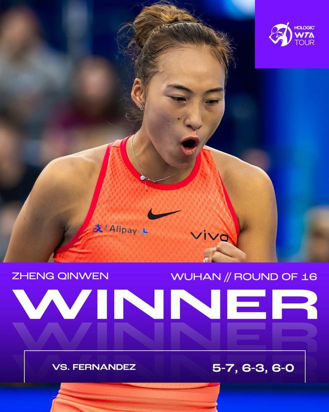 直播吧10月10日訊 WTA1000武漢網球公開賽女單1/8決賽,鄭欽文決勝盤送蛋,在家門口2-1逆轉加拿大球手費爾南德斯,成功晉級八強。