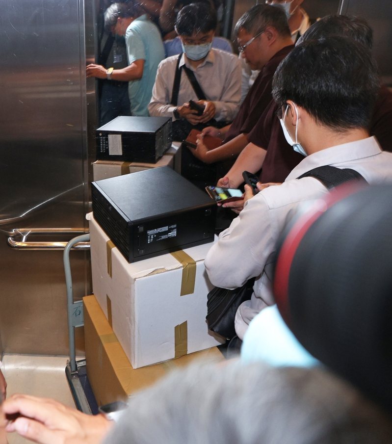檢調今天搜索國民黨立委鄭天財辦公室,並查扣帶走多箱證物。記者潘俊宏/攝影
