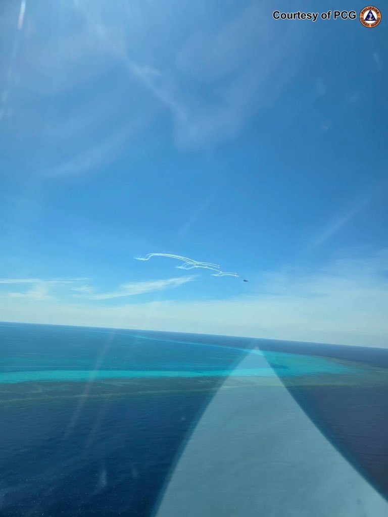 菲律賓政府指控,一架隸屬於菲律賓漁業與水產資源局(BFAR)的飛機22日在南海地區進行例行性巡邏時,遭到渚碧礁上的大陸軍人向該機發射照明彈。(取自菲國海岸警衛隊發言人Jay Tarriela的X平臺)