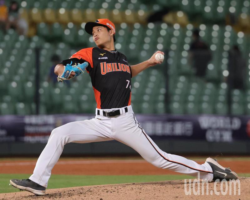 中職在臺中洲際棒球場舉行,統一先發投手林詔恩主投四局無失分。記者黃仲裕/攝影